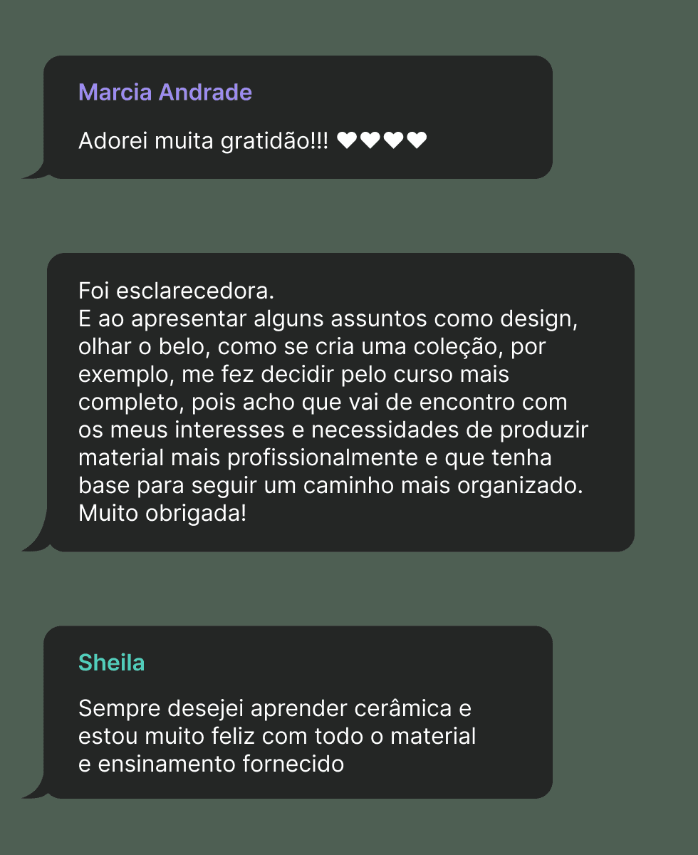 Prática ao vivo, guiada passo a passo, misturando massas, criando formas e explorando possibilidades para você já sair fazendo suas peças.